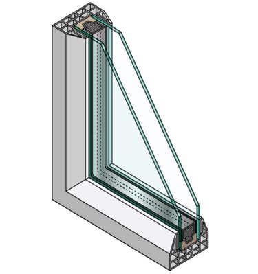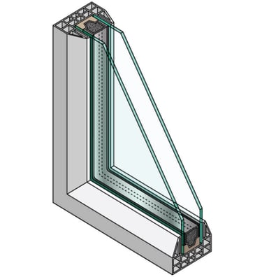 Double Glazed Panels- These panels are made up of two (or more) sheets of glass separated by an airspace, and insulated into a double glazed unit filled with argon gas. The argon gas stops condensation from forming. These sealed and insulated units are quite thick and can typically vary between 18-24mm.